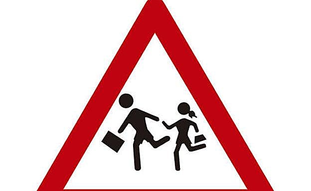 Siempre que veamos una señal triangular con el borde rojo hacia arriba indica peligro. La silueta que hay dentro del triángulo es de unos niños corriendo. Y me suelo encontrar niños en las escuelas, parques, zonas de juegos, etc.