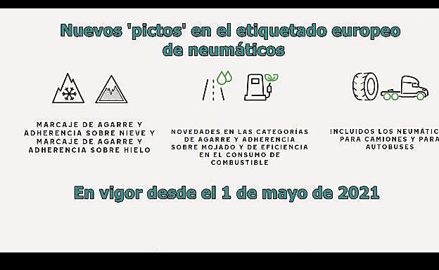 La nueva versión modificada de la normativa de etiquetado para neumáticos de la Unión Europea entra en vigor y será aplicable a partir del 1 de Mayo de 2021. Esto implica varios cambios tanto en el contenido del etiquetado como en el cómo deben de aparecer las informaciones contenidas en el etiquetado. Las nuevas etiquetas incluyen tres criterios de clasificación: la eficiencia en el consumo de combustible, el agarre y la adherencia sobre mojado, y la emisión de ruidos.