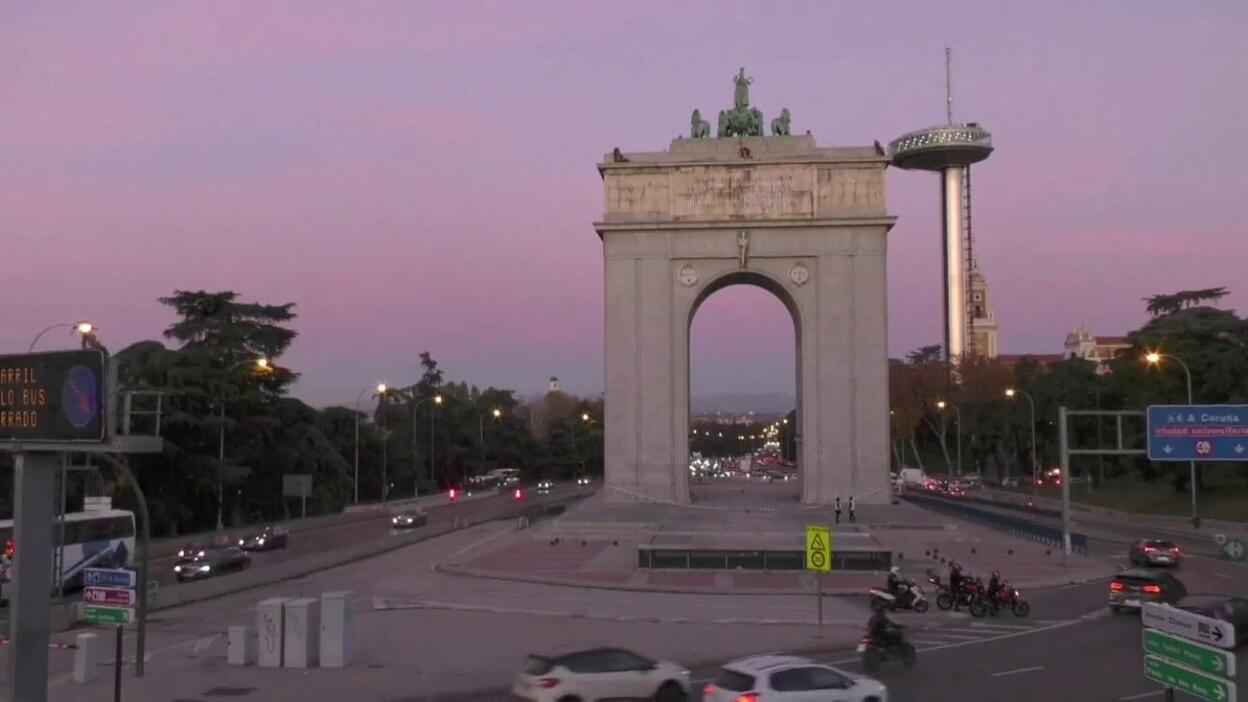 Activistas de Greenpeace han colgado este lunes un meme gigante en el Arco de la Victoria de Moncloa, en Madrid, para exigir al presidente del Gobierno, Pedro Sánchez, ejemplaridad en el respeto a los derechos humanos y el fin de la venta de armas para matar civiles.