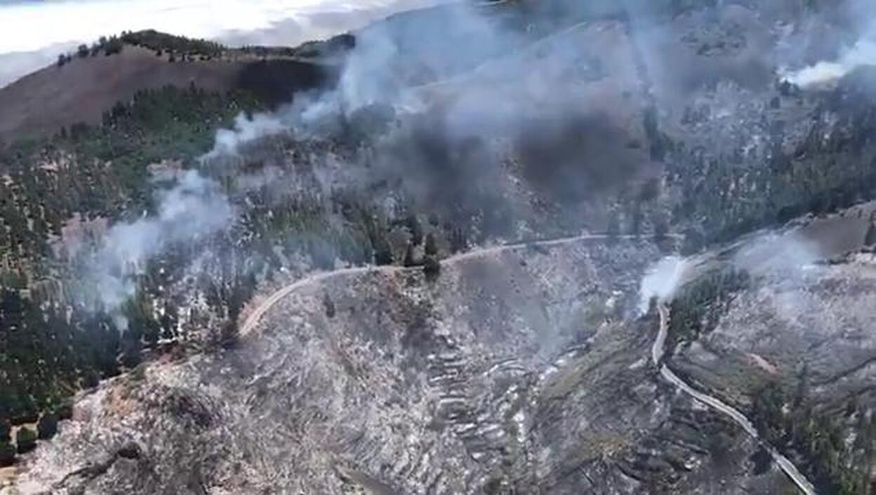 Imágenes del incendio forestal de la cumbre de Gran Canaria tomadas este domingo desde el helicóptero de coordinación de la Guardia Civil. Ya se han quemado más de 1.000 hectáreas en los municipios de Artenara, Tejeda y Gáldar.