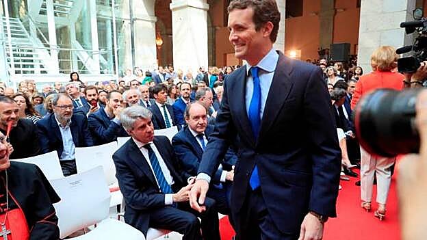 Casado ha evitado saludar al inicio del acto al expresidente de la Comunidad de Madrid y actual número 13 de la lista de Ciudadanos a la Comunidad de Madrid, Angel Garrido, quien abandonó la lista del PP a las elecciones europeas la pasada semana.