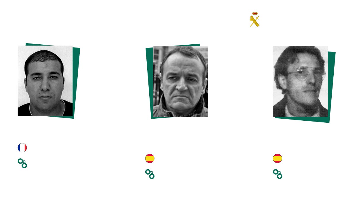 Más allá de etarras, el instituto armado sitúa en lo más alto de su lista al francés Larbi Kouki, acusado de atropellar y matar en 2010 a un guardia civil en acto de servicio.
