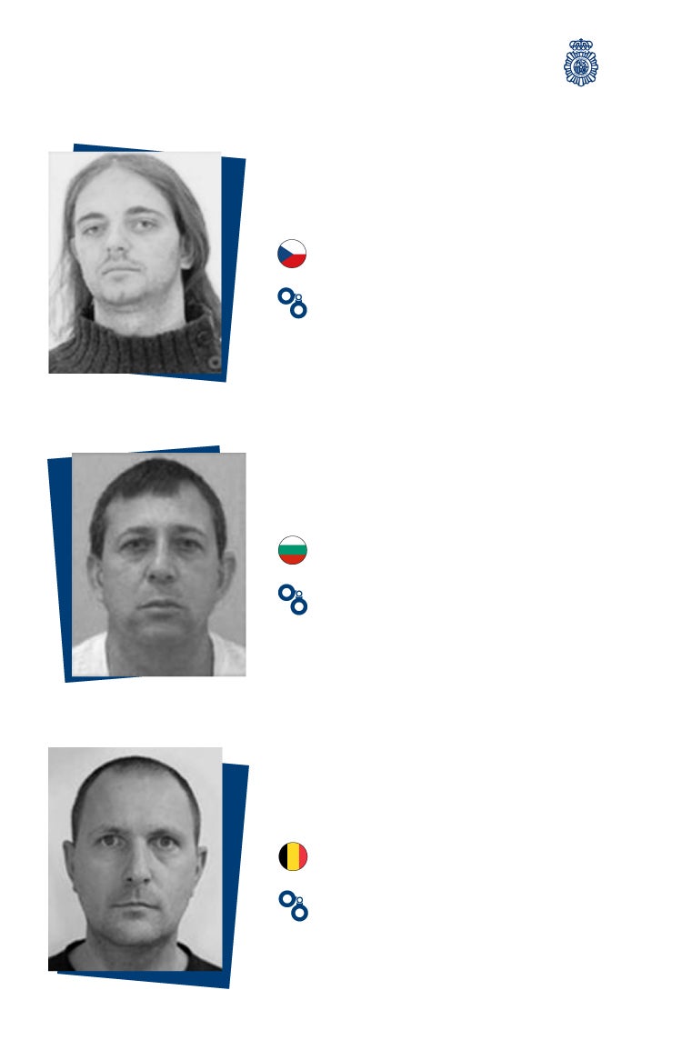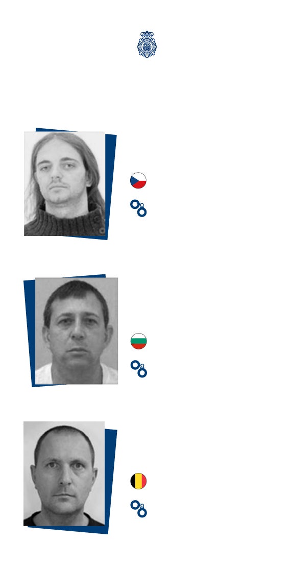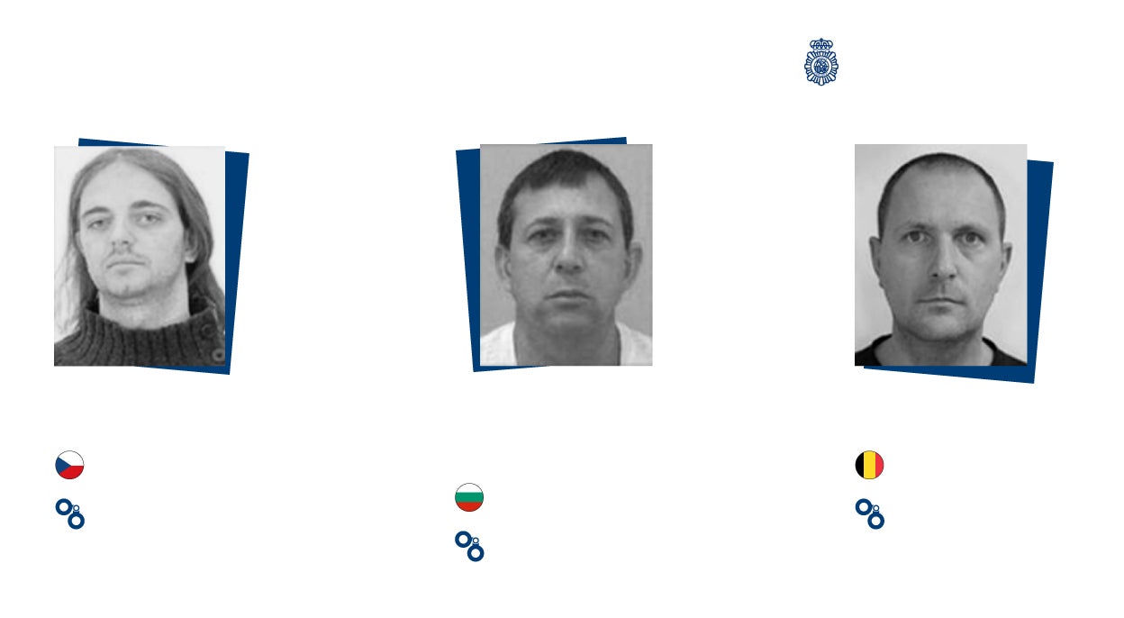 En el listado de la Policía, no obstante, quedan todavía algunos de los premios gordos, particularmente el capo del narco búlgaro Nikolay Shterev Kurkuchev, al que se acusa de dirigir una enorme red de tráfico de estupefacientes desde Sudamérica a España y que también figura en el elenco de Europol. En la lista de la Policía también destaca, entre otros el checo Norbert Kohler, otro narco con redes en Madrid, al que igualmente se busca por blanqueo y secuestro entre otros cargos; o el belga Tom Michielsen, al que se le conocen otro puñado de identidades falsas, y que está buscado por tráfico de drogas, blanqueo de capitales y tráfico de armas.