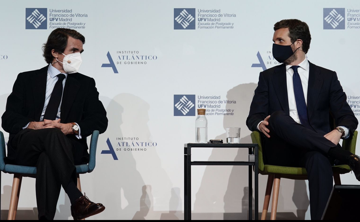 El morbo estaba servido. Pablo Casado y José María Aznar compartiendo escenario después de que el primero renegase hace tan solo unas semanas del pasado del PP que se dirime en los tribunales y de que el segundo se desvinculase este fin de semana de cualquier sombra de corrupción en los catorce años que estuvo al frente del partido. En una entrevista en la Sexta, el expresidente del Gobierno negó saber nada de la financiación irregular del PP ni de los personajes que se movieron durante años libremente por Génova y que han terminado en la cárcel por su implicación en la trama 'Gürtel'. También dirigió algún dardo envenado contra el actual líder de los populares al asegurar que el PP no está en su mejor hora a pesar de que él dejó «un partido y un espacio electoral totalmente unido».
