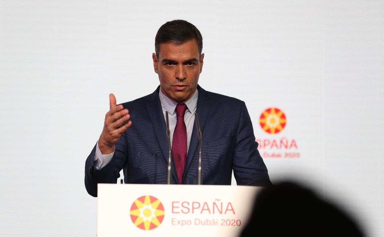 El presidente Pedro Sánchez se dirige a los medios en una comparecencia durante su viaje a Emiratos Árabes. EP / EPA /ali Haider