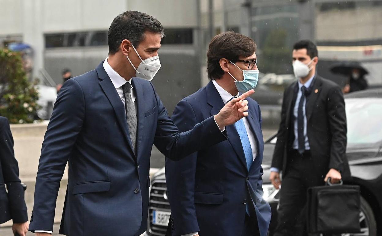 Sánchez, que visitaba el centro junto con los ministros de Ciencia, Pedro Duque, y Sanidad, Salvador Illa, ha llegado al centro hospitalario en su coche oficial acompañado por éste último.
