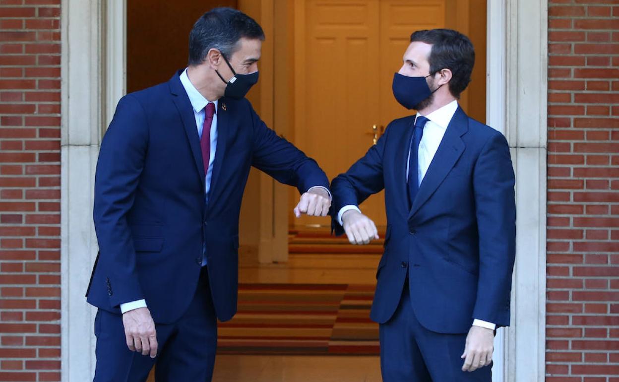 Apenas hay entendimiento entre Pedro Sánchez y Pablo Casado. Las dos horas de reunión que mantuvieron este miércoles en la Moncloa ni sirvieron para aproximar posturas en materia presupuestaria, descartado de antemano, ni para asegurar la renovación de órganos como el Consejo General del Poder Judicial. El mismo bloqueo, en resumen, que hace seis meses, cuando se vieron por última vez. La negativa del PP a abordar la composición de las instituciones con el argumento de que Unidas Podemos cuestiona el «régimen constitucional» se leyó en la Moncloa como síntoma de una «actitud obstruccionista». Y las opciones de acuerdo quedaron restringidas a asuntos sanitarios y jurídicos para intentar agilizar la lucha contra la pandemia.