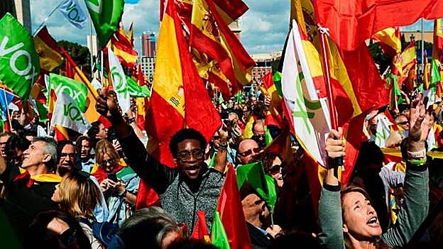 La manifestación matinal no ha tenido incidentes pero a mediodía, poco antes de empezar el acto de Vox, un grupo de personas --mayoritariamente encapuchadas-- han causado los altercados.