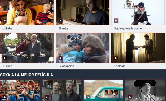 RTVE Digital ha lanzado el portal 'Somos cine' , en el que los espectadores podrán disfrutar gratuitamente de más de sesenta películas del cine español reciente. 'Campeones', 'Tarde para la ira', 'Un día perfecto', 'Julieta', 'El autor' o 'Nadie quiere la noche' están ya a partir de este viernes a disposición de todos los espectadores. A lo largo del mes de abril el catálogo se ampliará con películas como 'La llamada'. También con películas cuyos actores fueron premiados con el Goya, como 'El olivo', 'A cambio de nada' o 'Verano del 93' y no faltarán algunas de las cintas de más éxito de taquilla como 'La llamada', '1898: Los últimos de Filipinas' o 'Verónica