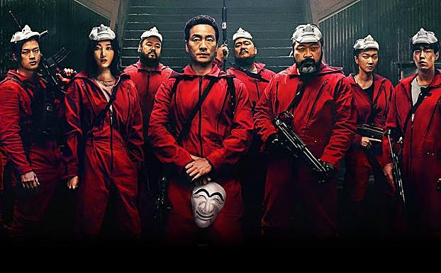 'La Casa de Papel: Corea', cuya primera temporada consta de seis entregas, contiene trazas de crítica social, como viene siendo habitual en el audiovisual de nacionalidad coreana. La acción se multiplica, más violenta y agresiva, a diferencia de su predecesora, en detrimento del desarrollo de los personajes. Sus traumas y vivencias importan, pero menos, para que avance el argumento. Las caretas de Dalí cuentan con una versión tipo kabuki (Hahoetal, una máscara tradicional), con una sonrisa inquietante, y los nombres de los protagonistas se mantienen, interpretados por actores populares en Corea del Sur, un país que consume compulsivamente cultura popular y pasa por taquilla con cifras astronómicas (la reciente 'The Roundup' ha superado los 12 millones de espectadores en un país de 50, casi como España).