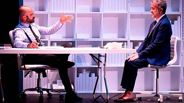 El Auditorio de Valleseco acoge este sábado, a las 20.30 horas, la obra de Luis O’Malley en la que dos personajes luchan contra la impotencia, sus miedos y el destino rozando el absurdo. La obra comienza con el abogado Maurice Quevedo (Mingo Ruano) en su despacho, pistola en mano para quitarse la vida, cuando un personaje muy peculiar (José Luis Massó) toca la puerta...