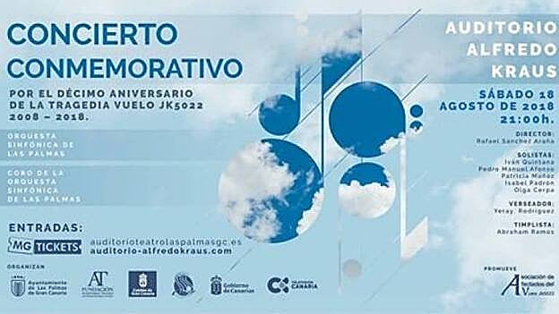 A dos días de cumplirse el décimo aniversario de la tragedia del vuelo JK5022, del 20 de agosto de 2008, el Auditorio Alfredo Kraus reúne a grandes intérpretes y músicos canarios este sábado a las 21.00 horas en un concierto especial para rendir tributo a las víctimas.