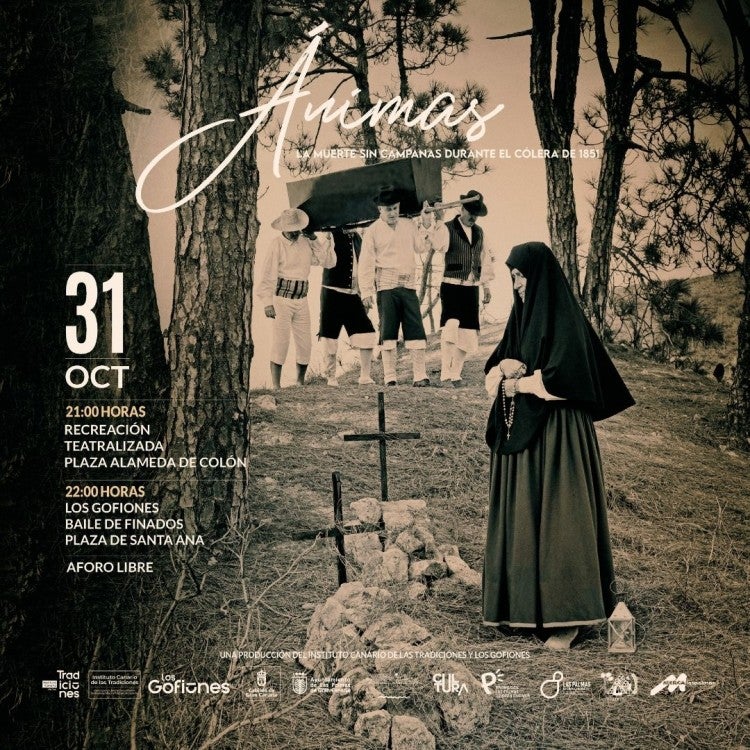 El programa se desarrollará el viernes 31 de octubre de 2025, y contempla dos actos principales: una recreación teatralizada y el tradicional concierto de Los Gofiones. La recreación, titulada «Ánimas, la muerte sin campanas durante el cólera de 1851», será representada por la Asociación Dragos y Laurel y forma parte del proyecto de revitalización del culto a las ánimas impulsado por el Instituto Canario de las Tradiciones.