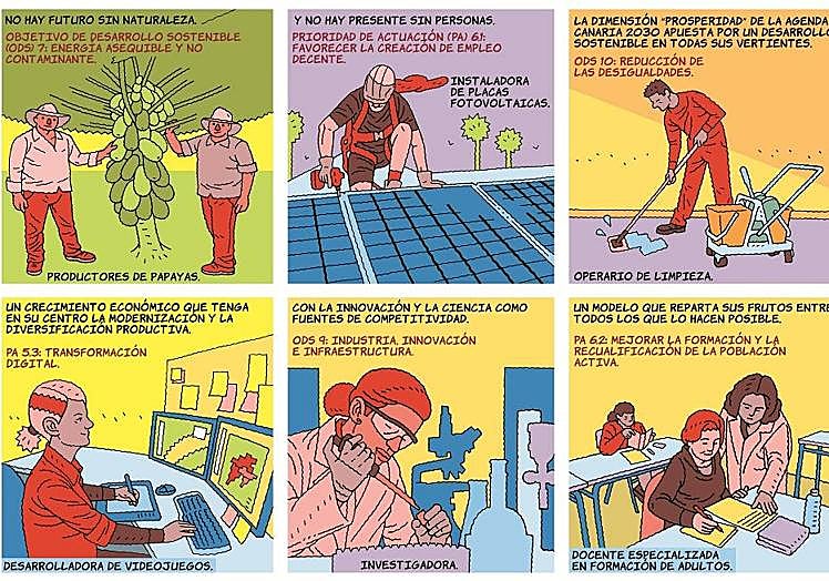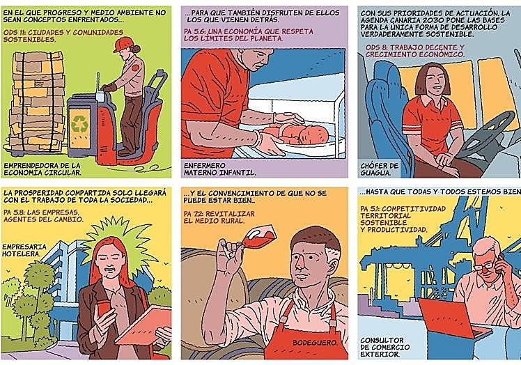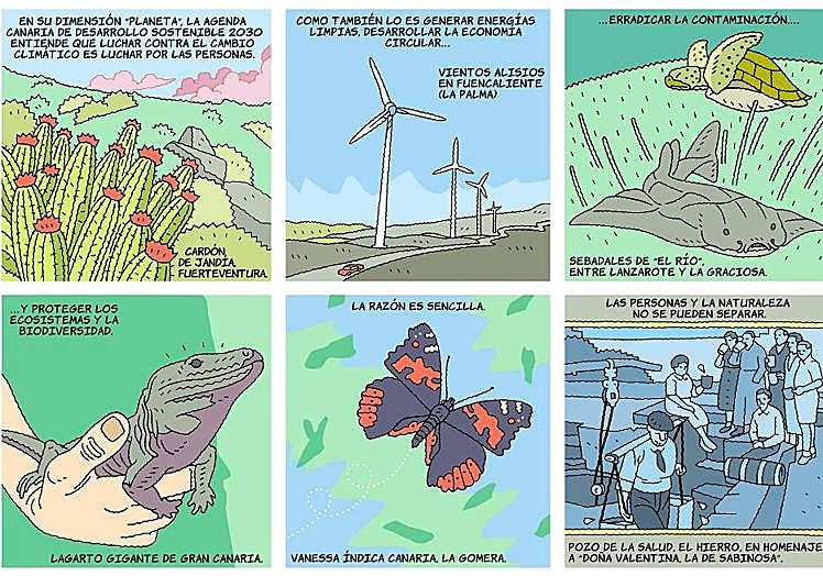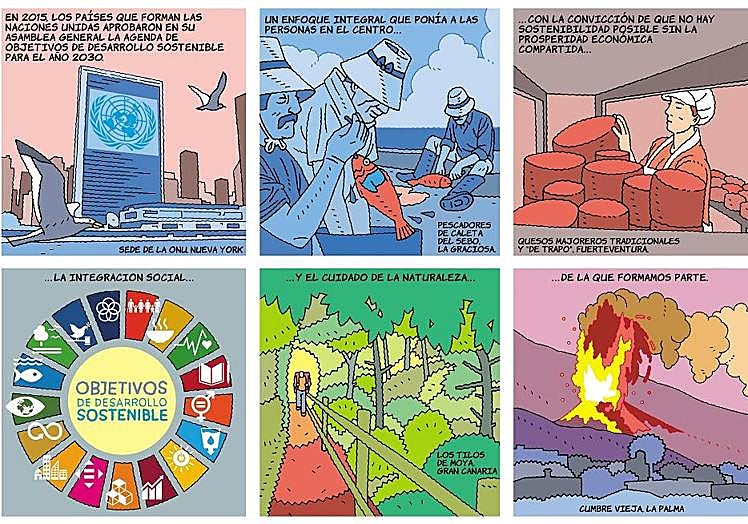 La publicación divulga los Objetivos de Desarrollo Sostenible de Naciones Unidas y las bondades de la Agenda Canaria 2030 | El tebeo cuenta con guion del periodista Francisco de Zárate y dibujos de Fer Calvi