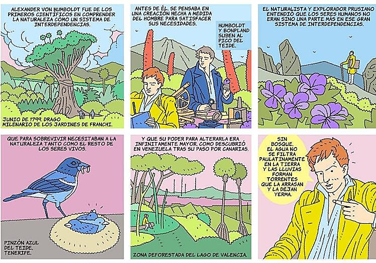 Esta tercera página comienza en la viñeta con el texto «Alexander von Humboldt fue de los primeros científicos....» y termina en la viñeta con el texto «Las personas y la naturaleza no se pueden separar».