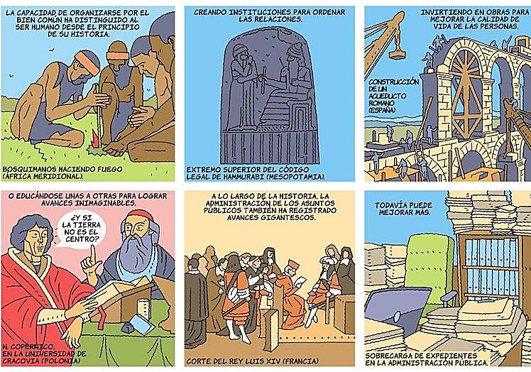 Esta quinta página comienza en la viñeta con el texto «La capacidad de organizarse por el bien común....» y termina en la viñeta con el texto «Mejorar nuestra vida en común es lo que nos hace humanos».
