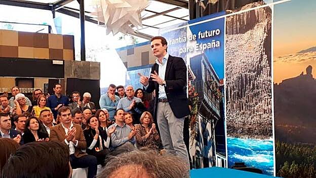 En su intervención, Casado también se ha referido al candidato de su partido a presidente de Canarias, Asier Antona, como la persona mejor preparada para protagonizar el cambio que, a su juicio, necesitan las islas.