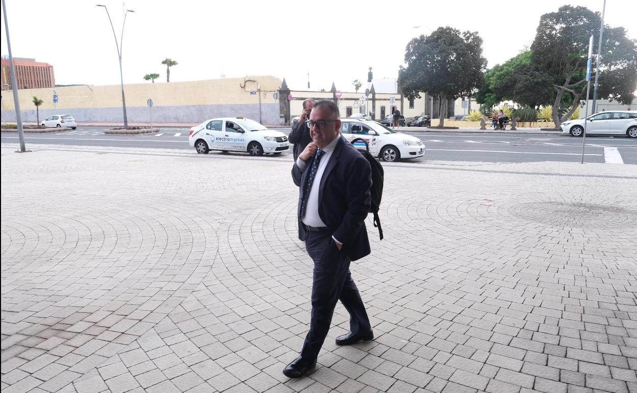 Domínguez, que fue citado este jueves, a las 9.30 horas, en el Juzgado de Instrucción número 7 de Las Palmas de Gran Canaria, junto a Rayco Rubén González, administrador único de la empresa RR7 United SL, fue puntual y llegó a la Ciudad de la Justicia antes de las 9.00 horas, justo previamente a la apertura de sus puertas.