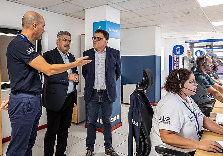 El consejero de Política Territorial, Manuel Miranda, cuyo departamento ha asumido las competencias de Emergencias, recorrió las instalaciones de la Sala Operativa del 112 en la capital grancanaria, y agradeció personalmente el trabajo de los profesionales de diferentes cuerpos y administraciones que prestan servicio en la misma.