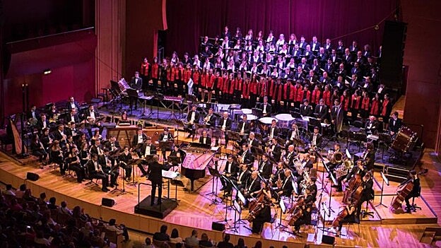 El maestro Luis García Santana, dirigió a los 170 intérpretes sobre el escenario con mucha energía, logrando un sonido absolutamente equilibrado, sin descuidar en ningún momento ni a los solistas, ni al resto de instrumentistas y coros. Una mañana muy emotiva, donde el público saboreó el contraste entre la brillantez del comienzo de la sinfonía hasta el momento más íntimo del solo del violín y el violonchelo, que los solistas, Preslav Ganev y Marisa Roda, totalmente compenetrados, ejecutaron con una gran precisión y sonoridad. Oliver Curbelo, al piano, demostró su refinada técnica, tanto integrado con la orquesta como destacando en sus momentos solistas. El Coro de la Orquesta Filarmónica, muy aplaudido por los asistentes, vibraron con voces absolutamente bien colocadas, que resonaron por toda la sala sinfónica al compás de la conocida música de la banda liderada por Freddy Mercury. El coro infantil sonó absolutamente angelical, en el momento de la redención final.