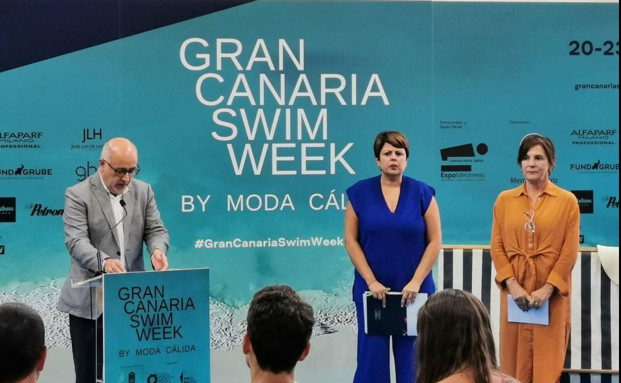 Gran Canaria Swim Week by Moda Cálida reunirá a partir de este jueves en ExpoMeloneras a 32 diseñadores y marcas, de las que 15 son canariasAntonio Morales, presidente del Cabildo de Gran Canaria, Minerva Alonso, consejera de Industria, Comercio y Artesanía, y Ana Larrañaga, directora de Negocio Ferial de Ifema, presentaron en la Casa Palacio las novedades de la 26ª edición de Gran Canaria Swim Week by Moda Cálida que se celebrará en ExpoMeloneras a partir de este jueves.