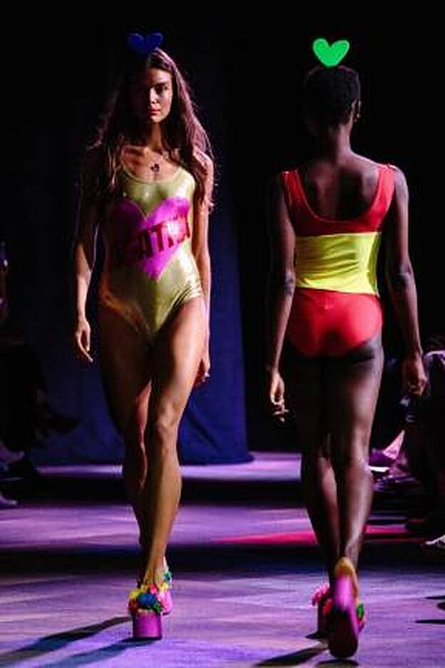 Es una colección fiel a Agatha Ruiz de la Prada, que ve la vida a través del color, con sus estampados de flores, de líneas y otros impresos, lentejuelas y su distintivo corazón en las piezas y que también llevaron las modelos como adorno en su cabeza.