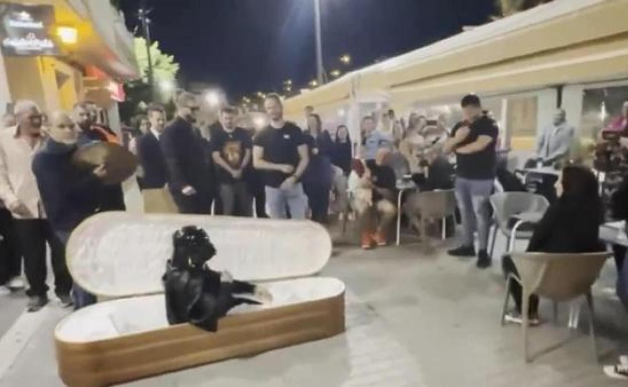 La escena podría haber sido sacada de una película de los Monty Python, pero ocurrió en Murcia. El vídeo de una surrealista pedida de mano se ha viralizado a través de las redes sociales después de que un usuario captara el momento en la localidad de Fortuna.