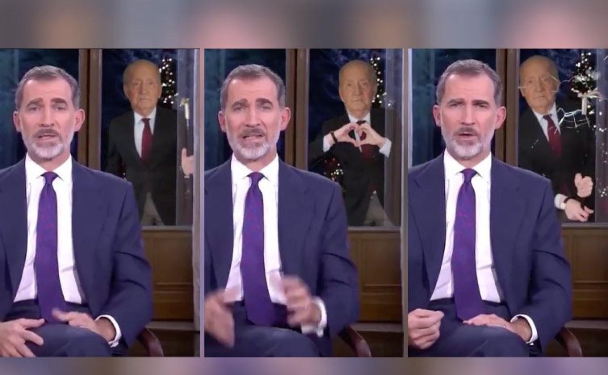 Se trata de la broma en que se ve al rey emérito tocando al fondo para que su hijo Felipe VI lo dej entrar mientras lee el discurso.