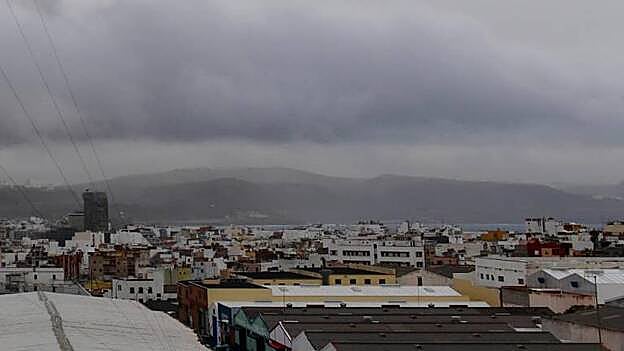 Cae agua en Las Palmas de Gran Canaria, con cierta intensidad por momentos, a primera hora de este lunes por un frente lluvioso que afecta a Canarias y la península. La lluvia está dificultando el tráfico, con retenciones en las principales arterias de la ciudad.