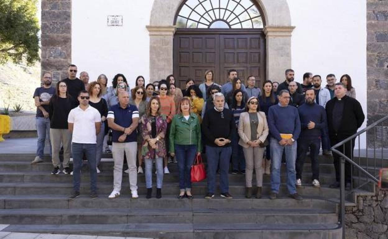 Tras la sesión plenaria, la corporación municipal acompañada del personal del Ayuntamiento y ciudadanía, han mantenido un minuto de silencio convocado en toda Canarias, como expresión de la repulsa por el asesinato machista de Hayate.