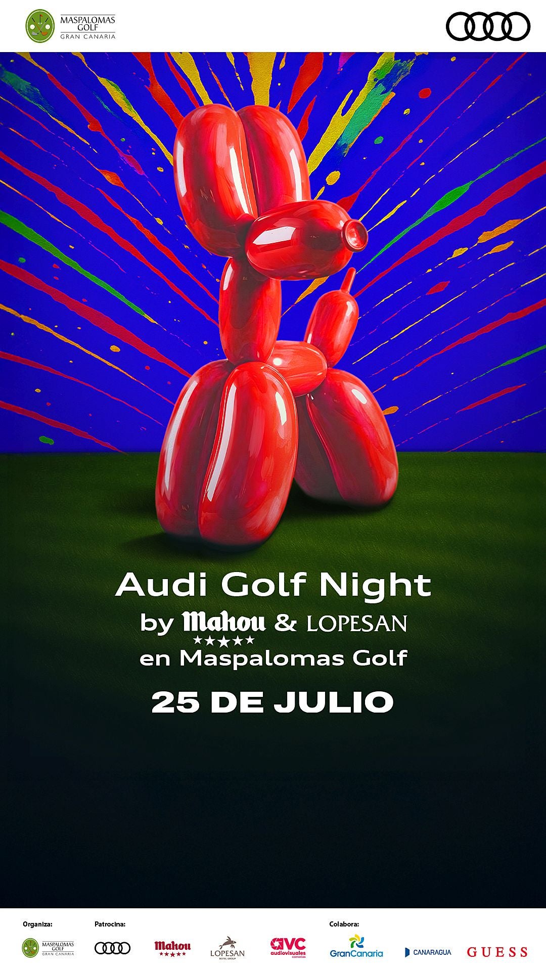 La cuenta atrás ha comenzado: el evento más esperado del verano, Audi Golf Night by Mahou & Lopesan, regresa el próximo 25 de julio con su 15ª edición, y lo hace con una propuesta más creativa, provocadora y sensorial que nunca. Este año, el arte será el hilo conductor de una noche inolvidable que convertirá Maspalomas Golf en una auténtica instalación viva, inmersiva y multisensorial.