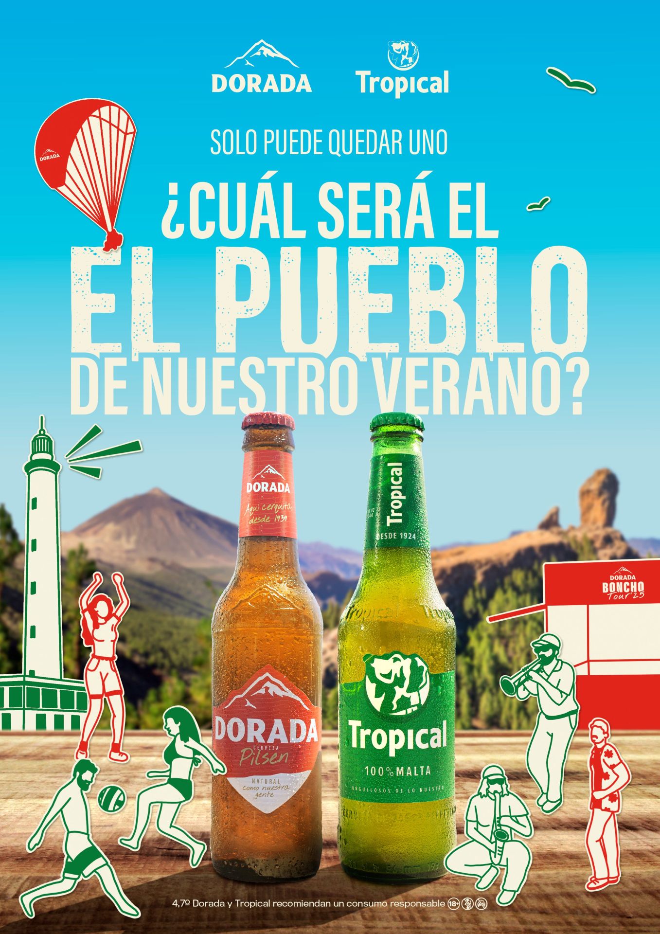 Este verano, Dorada y Tropical suben la temperatura con una celebración del orgullo canario. En una campaña sin precedentes, las cervezas más emblemáticas del Archipiélago lanzan una pregunta tan sencilla como difícil de responder: ¿Qué pueblo representa mejor el espíritu del verano en Canarias?