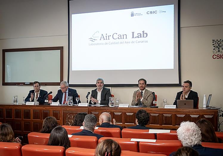 El Instituto de Productos Naturales y Agrobiología (IPNA) del Consejo Superior de Investigaciones Científicas (CSIC) ha acogido durante la mañana de este miércoles, la inauguración oficial del Laboratorio de Calidad del Aire de Canarias (AirCanLab), una nueva infraestructura científica puesta en marcha gracias a un convenio entre el Gobierno de Canarias y el CSIC. El acto ha contado con la participación de Fernando Clavijo, presidente de Canarias; Carlos Closa Montero, vicepresidente de Organización y Relaciones Institucionales del CSIC; Mariano Hernández Zapata, consejero de Transición Ecológica y Energía; y Sergio Rodríguez, investigador responsable del AirCanlab.