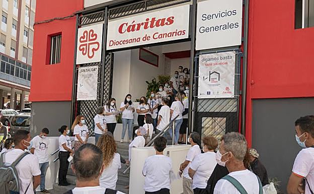 Con el objetivo de prevenir las situaciones de exclusión social y la puesta en marcha de políticas públicas de prevención del sinhogarismo que garanticen el acceso a los recursos adecuados, Cáritas ha realizado un gesto en los Servicios Generales de Cáritas Diocesana de Canarias, en la Avenida Escaleritas de la capital grancanaria, que ha culminado con la lectura de un manifiestodenuncia de esta situación.