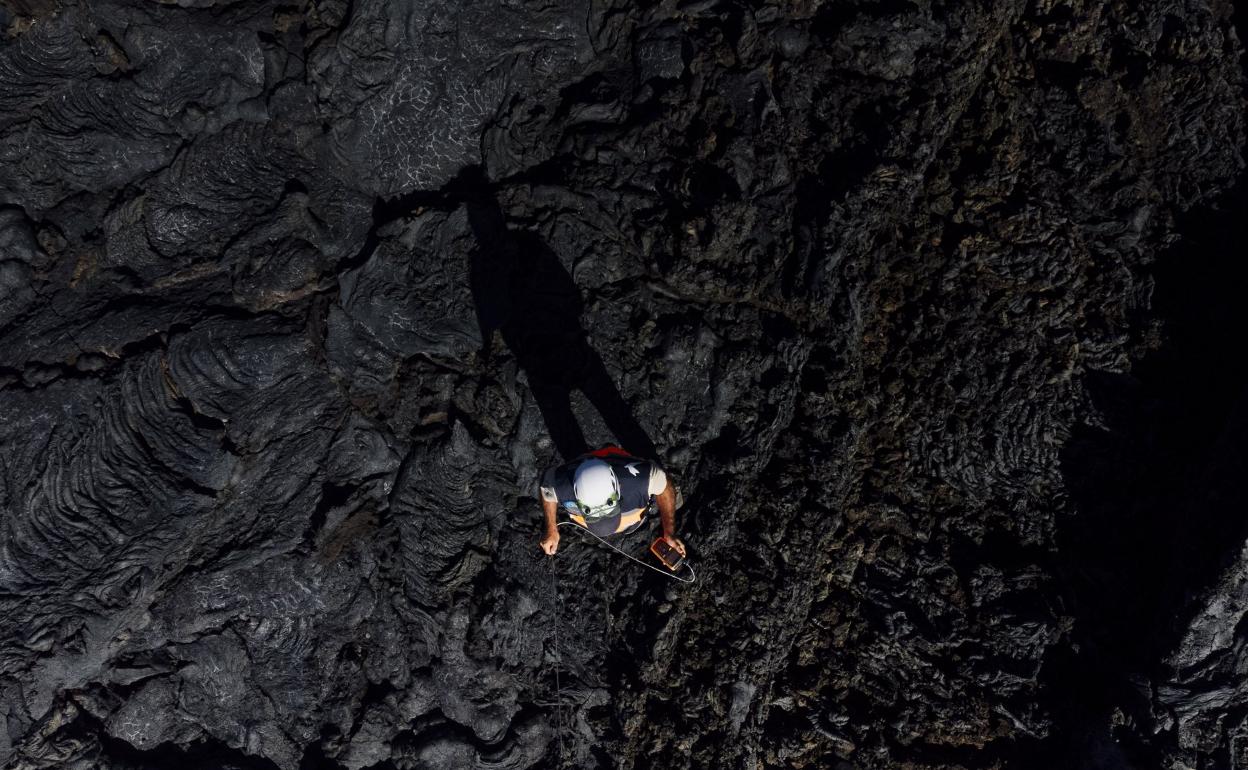 «Hasta ahora hemos tomado datos en superficie, pero estamos empezando a hacer sondeos que nos están aportando cómo está la temperatura en profundidad», señala el geólogo acostumbrado al calor de coladas después de haber monitorizado unas 150 localizaciones.