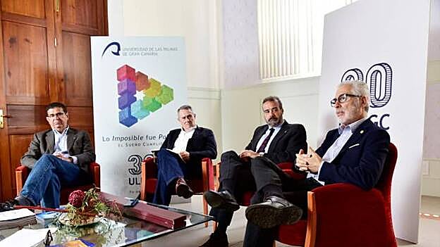 Se sienten en casa, lo están. Una casa levantada a partir de los cimientos de una movilización popular histórica. Hablan de forma distendida de uno de los hitos educativos más determinantes del archipiélago del que han sido protagonistas directos. Hoy se cumplen 30 años de la aprobación en el Parlamento canario de la Ley de Reorganización Universitaria que supuso la creación de la ULPGC y los cuatro rectores que han tenido su bastón de mando se sientan para rememorar estas tres décadas, sus peores y mejores momentos, sus luchas por la financiación. Recorren un tiempo en el que la ULPGC ha pasado de ser la única institución que cubría el déficit de formación universitaria de un pueblo a lidiar en un espacio de enseñanza superior donde la competencia está a la orden del día. Coinciden en que siempre han apreciado una «falta de visión» de los diferentes gobiernos para saber qué es la universidad y el papel esencial que tiene para ayudar al desarrollo de la sociedad. «Está desaprovechada», sentencian.