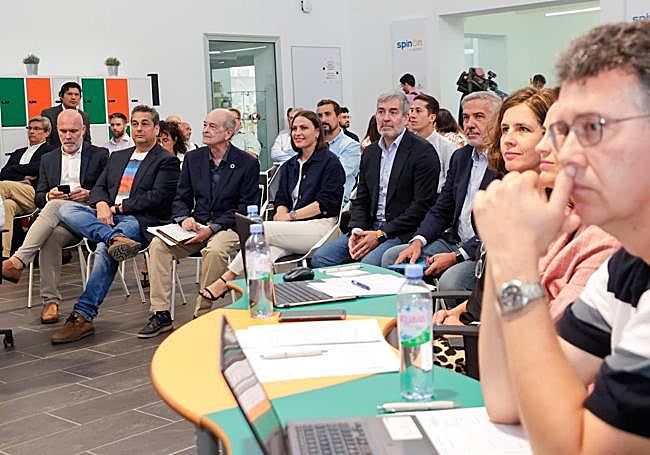Clavijo agradeció al rector de la ULPGC, Lluís Serra, la invitación al Demo Day de Spin on. «Creo que es el camino de poder transferir el conocimiento de nuestros centros más importantes del saber, que son las universidades públicas, hasta el tejido productivo y conseguir que los alumnos estén interesados en emprender empresas spin off o startups, que los conocimiento adquiridos a lo largo de su formación, en los que se ha invertido recursos importantes públicos, luego puedan ser transferidos en emprendimiento, en talento o simplemente en proyectos para que puedan las empresas canarias acoger y mejorar su productividad . En este sentido, la ULPGC es un ejemplo y he querido atender a esta llamada porque es el camino a seguir».