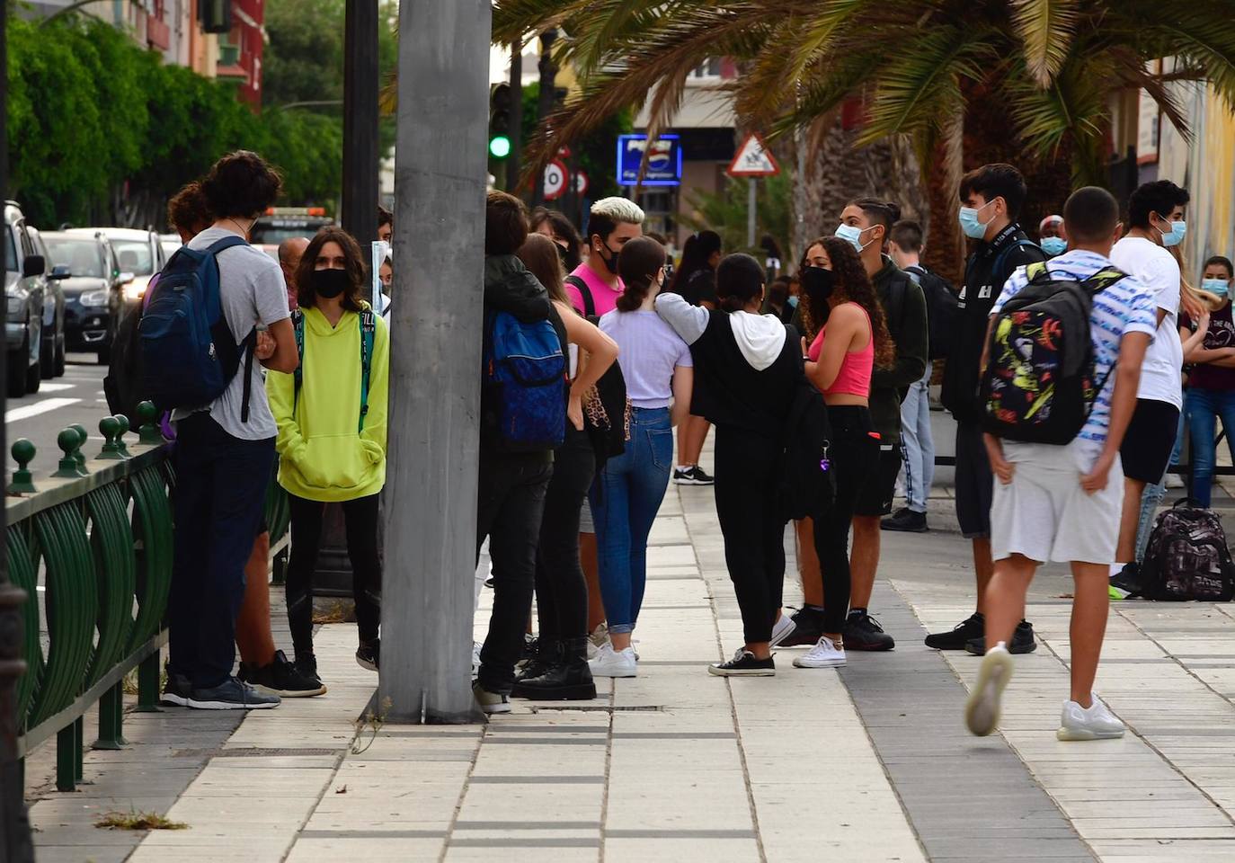 La nueva normalidad ha vuelto a los institutos, centros de formación profesional y otras enseñanzas (Escuelas de Artes y Aulas Enclave) de centros públicos y privados (concertados y privados) de Canarias. Esta mañana 177.00o estudiantes alumnos y alumnas retomaron las clases en el horario normal académico después de que la semana pasada tomaran un primer contacto para conocer y adaptarse al nuevo escenario ante la covid-19.