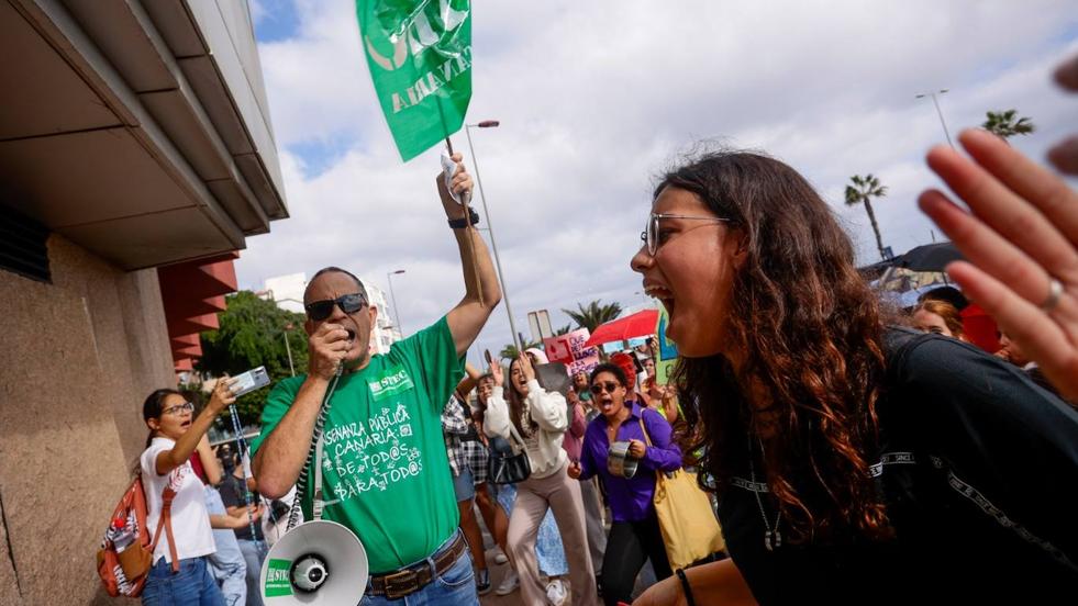 Alumnado y profesorado salen a la calle a protestar por las malas condiciones de las infraestructuras y la afectación del tráfico de la GC1 junto al centroEstudiantes y docentes de la Escuela de Arte y Superior de Diseño Gran Canaria salieron este lunes a protestar por las condiciones en las que se lleva a cabo la enseñanza en el centro educativo, uno de los más grandes de España en su modalidad.