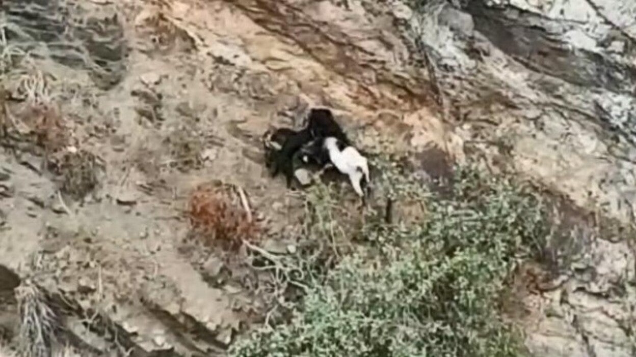 En las duras imágenes se ve como el sujeto en cuestión primero intenta capturar al animal con una soga intentando atarla a su cornamenta, pero la cabra se zafa y sale corriendo. Es el momento en la persona que intenta capturar a la cabra azuza a los cinco canes a la orden de «agárrala», que salen a la búsqueda del asustado animal y empiezan a atacarla hasta que esta, acorralada, sale rodando por el barranco.