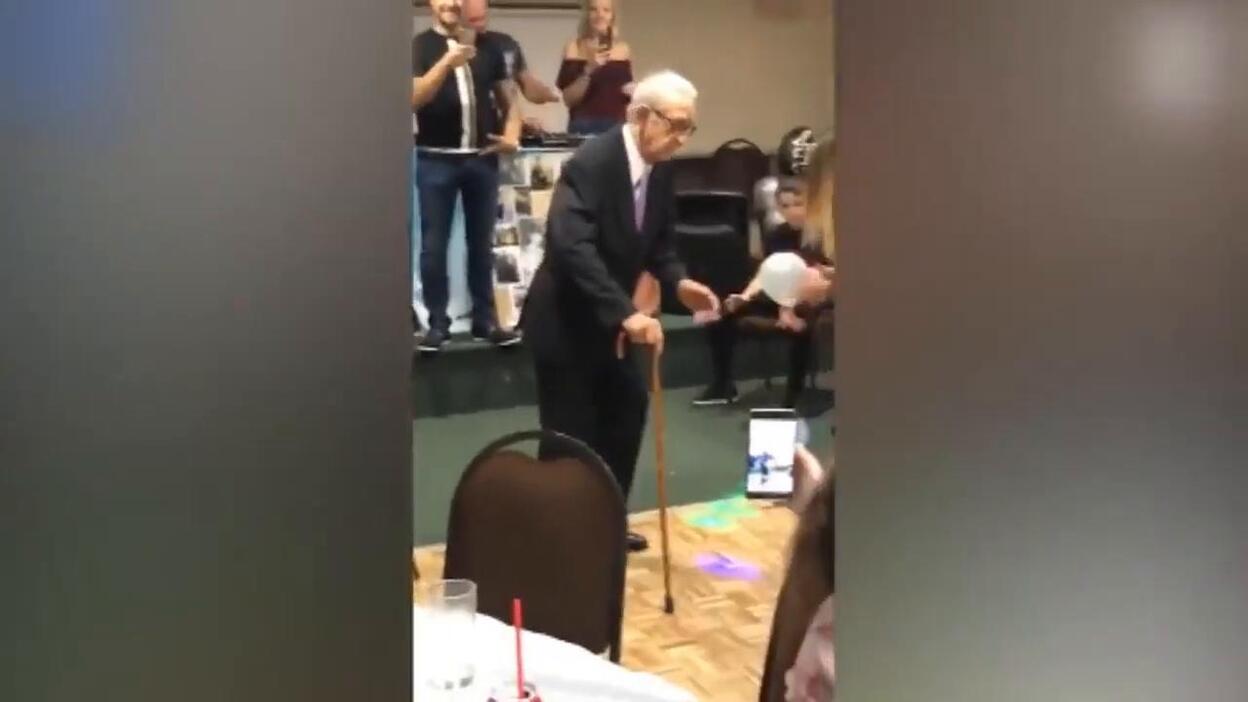 Owen Filer, de Cwmbran en Nueva Gales del Sur, ha protagonizado uno de los vídeos virales de las últimas horas. Y es que a sus 100 años ha sorprendido su gran vitalidad y agilidad en la celebración de su cumpleaños. Y es que Filer no solo ha logrado celebrar su centenario, rodeado de familiares y amigos, sino que lo ha hecho a ritmo de rock and roll.