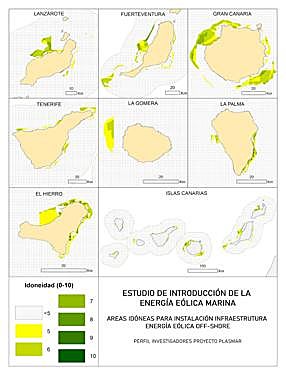 Un estudio firmado por Andrej Abramić, coordinador científico del proyecto PLASMAR (PLAnificación Sostenible de áreas MARinas en la Macaronesia) y PLASMAR+, así como por el investigador Alejandro García Mendoza, y por Ricardo Haroun, director en funciones del Instituto Universitario de Investigación en Acuicultura Sostenible y Ecosistemas Marinos (IU-ECOAQUA) de la Universidad de Las Palmas de Gran Canaria (ULPGC), ha logrado identificar las áreas marinas más idóneas de todas las islas del archipiélago canario para el desarrollo de la Energía Eólica Marina (EEM).