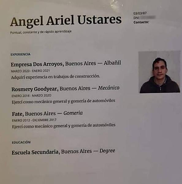 En ese documento, el padre de la familia narraba que había trabajado durante cinco años (entre 2012 y 2017) como gomero para dos empresas reconocidas y que durante la pandemia por coronavirus, entre marzo de 2020 y enero de 2021, se había desempeñado como albañil en una compañía instalada en la provincia de Buenos Aires.