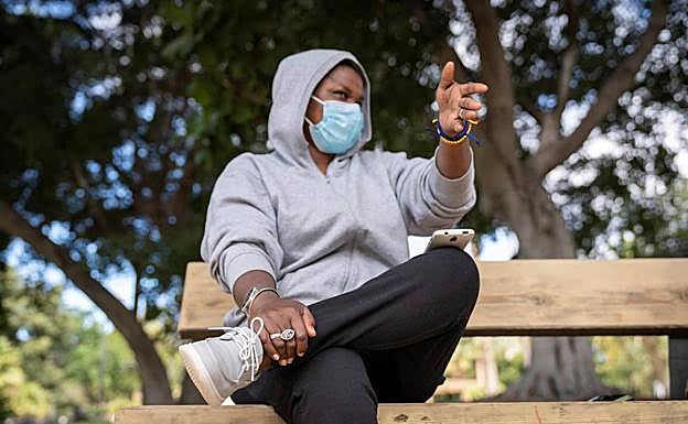 El tiempo ha pasado, ya lleva más de cinco meses en Tenerife, en un limbo que no le permite avanzar y que trata de llenar haciendo pulseras con coloridos hilos que luego vende para comprar algo de comida de su gusto.