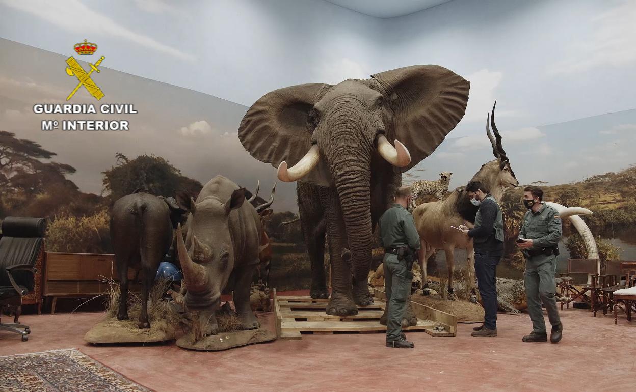 El Servicio de Protección de la Naturaleza (Seprona) de la Guardia Civil de Valencia realizó la operación 'Valcites' el pasado jueves en una finca de Bétera. Los agentes registraron dos naves y una vivienda, donde hallaron los especímenes disecados, y 198 colmillos de marfil de elefantes. La colección de taxidermia ocupaba unos 50.000 metros cuadrados.
