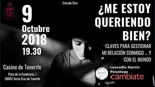El próximo martes 9 de octubre, a partir de las 19.30 horas, disertará sobre este tema en el Casino de Tenerife, en la Plaza de la Candelaria 1 de la capital tinerfeña. «Claves para gestionar mi relación contigo... Y con el mundo», reza el contenido de la conferencia. El acto será con entrada libre.