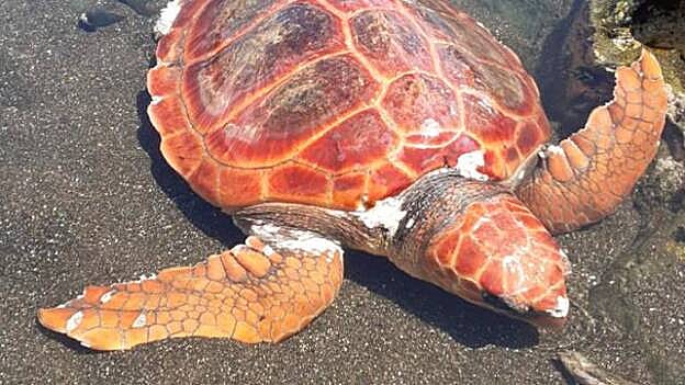 Por su parte, el mismo día que apareció este ejemplar, otra tortuga de 4 kilos fue avistada por un pescador en la costa de Bañaderos atrapada en sacos de rafia y redes de pesca que le provocaron daños superficiales.