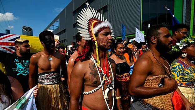 El ministro de Exteriores de Vanuatu, Ralph Regenvanu, pronunció ante los manifestantes un discurso en inglés "porque la gente que necesita escuchar esto, no están aquí y no son los que causan el problema", en referencia a los países desarrollados.