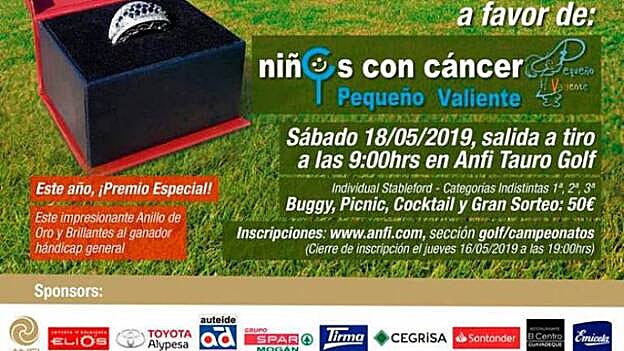 El Grupo Anfi organizará este sábado la octava edición del torneo benéfico para recaudar fondos para la Asociación Pequeño Valiente, una organización regional formada por padres con niños que padecen cáncer. La competición, que tendrá lugar en Anfi Tauro Golf, estará este año apadrinada por los jugadores Leo Messi, David Silva, Luca Modric o Joaquín Sánchez, que cederán camisetas y balones firmados para el sorteo posterior.
