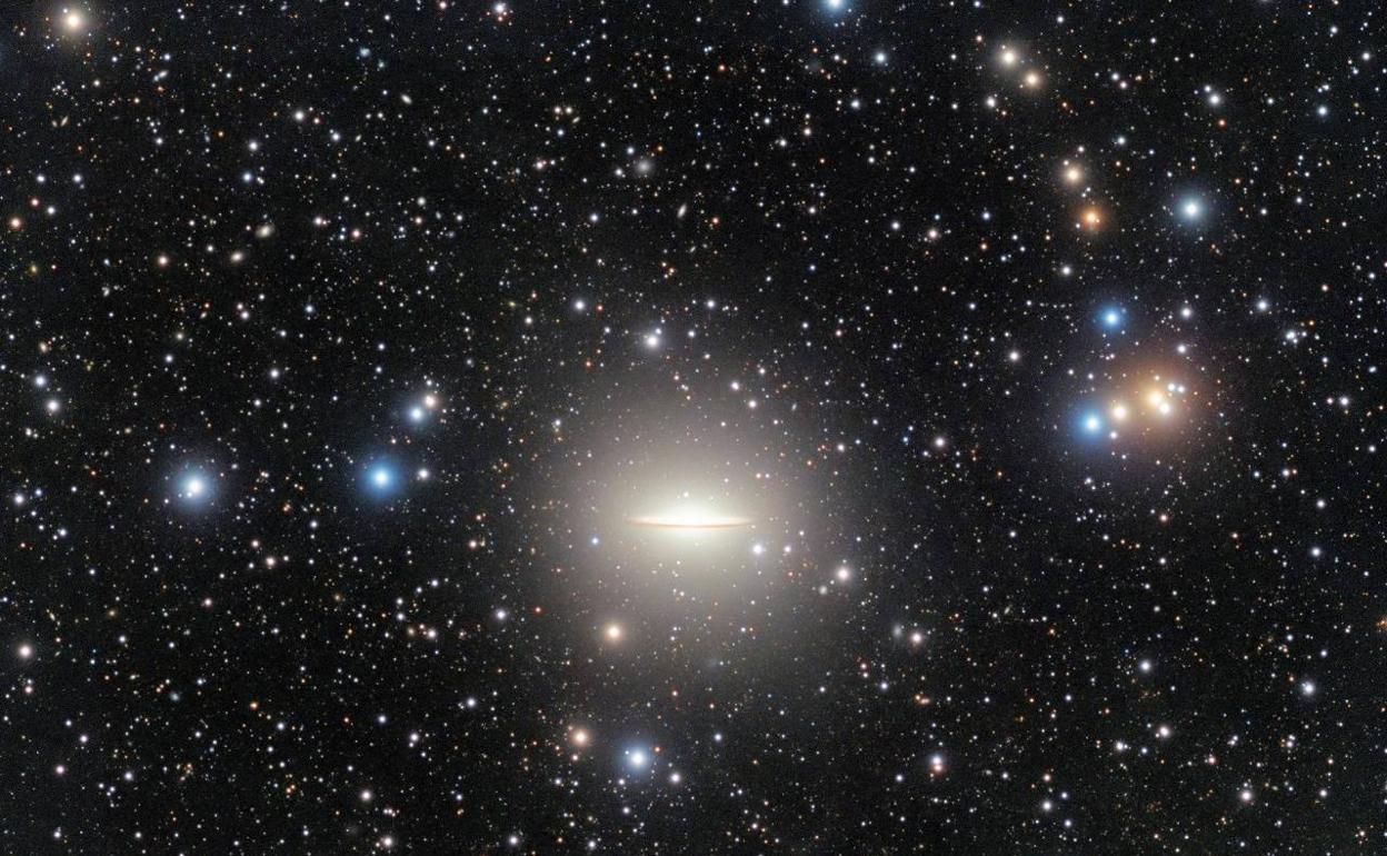 Para explicar su presencia se propuso lo que se conoce como «fusión húmeda», un escenario en el que una gran galaxia elíptica se vio rejuvenecida con grandes cantidades de gas y polvo procedentes de otra galaxia masiva, que alimentaron la formación del disco que hoy observamos, indica la nota.